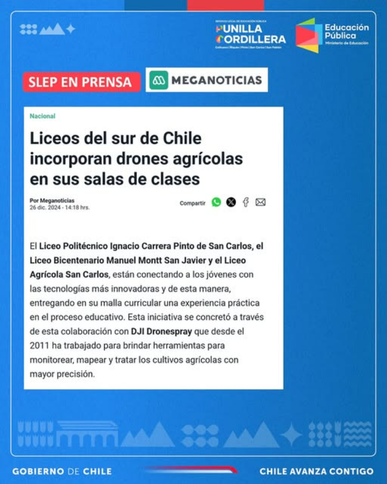 Este jueves 19 de Diciembre nuestra Directora Sra. Marisol Valenzuela Marin junto al equipo Técnico Profesional de nuestro Liceo Agrícola San Carlos, asistieron a la Universidad de Concepción, sede Chillán, al lanzamiento del Proyecto “Implementación de un Polo de Desarrollo Leer más …