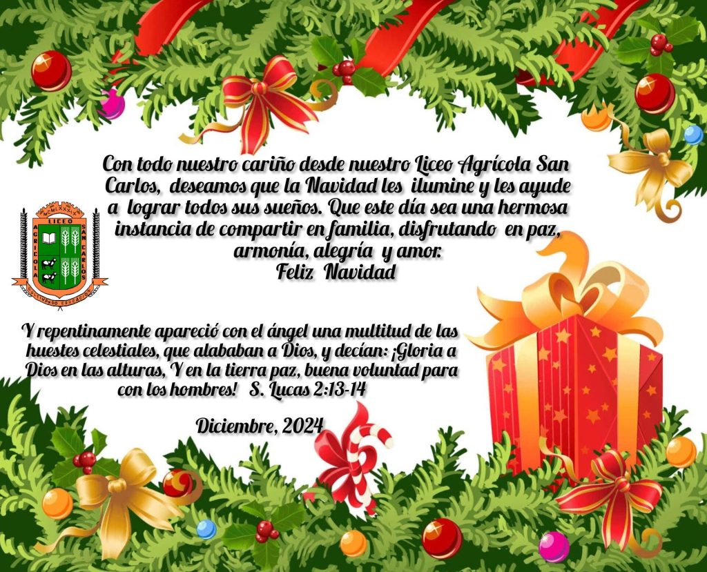 Liceo Agrícola San Carlos saluda de manera muy especial a toda nuestra Comunidad Educativa, como así también a todos nuestros amigos, ex alumnos, y colaboradores, que la paz y el amor sea con vosotros en estas fiestas, felicidades y alegrías Leer más …